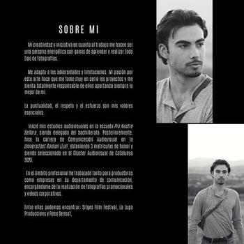 ¡Visite mi página oficial. Link: https://marinellofilmer.wixsite.com/photos Nascut a Barcelona l’any 1998. És llicenciat en Comunicació Audiovisual a la Universitat Ramón Llull (2020), especialitzat en realització. Ha obtingut al llarg de la seva carrera 3 matrícules d’honor incluint la menció a millor TFG de la promoció 2016/2020, sent seleccionat al Clúster de Catalunya i al Clúster Internacional per la seva producció en el projecte Ergasía. Ha escrit guions originals com “El Tiempo a Nuestros Pies” i “Fèlix y Melodía”. El seu últim projecte ha estat “Adela”, protagonitzat per Natàlia Barrientos i produït per Terra Nova World, on ha estat el director i coguionista. Ha treballat a La Lupa Produccions, ha estat càmera i muntador de material promocional al Festival de Sitges (Edició 52) i ajudant de STAFF en els Premis Gaudí 2019. Premiat en el Festival de curtmetratges ARTMOV 2018, guanyador del concurs fotogràfic anual de Sant Antoni i seleccionat tant al Clúster Audiovisual de Catalunya 2020 com el Clúster Audiovisual Internacional. Actualment està cursant una carrera d’interpretació a l’escola La Bobina.
