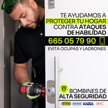 En Alta Cerrajería Madrid contamos con más de 15 años de experiencia ofreciendo servicios de cerrajería urgente 24 horas en Madrid, con un trato profesional, cercano y transparente. Somos especialistas en aperturas de puertas sin daños, incluso en cerraduras de alta seguridad, y en la conversión de cerraduras a perfil europeo, una de las mejores soluciones para aumentar la seguridad de tu vivienda o negocio. Trabajamos exclusivamente con productos de alta gama y máxima seguridad, asesorando a cada cliente para proteger su hogar frente a robos, bumping y técnicas de apertura no deseadas. Servicio rápido y eficaz Técnicos cualificados, Presupuestos claros y sin sorpresas Atención 24 horas, los 365 días del año Tu seguridad es nuestra prioridad. Cuando necesitas un cerrajero de confianza en Madrid, Alta Cerrajería Madrid responde.