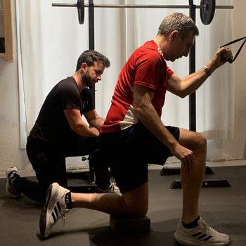 Máster en Acondicionamiento y Readaptación de Lesiones. Colegiado 60578. Conócenos en nuestra web de Kenkotraining • Sitio propio • App propia complementaria para tu día a día • Entrena sin molestias • Diversos Planes y precios • 1ª sesión (‘sesión 0’) gratuita • También en dúo y grupo • Diseñamos juntos tu planificación • Apoyad@ en tu propósito • Readaptación de lesiones y entrenamiento para una recuperación segura, permanente y sin limitaciones • Puedes incrementar tu entrenamiento con nuestra App, con sesiones autónomas también personalizadas • En uno de nuestros estudios de entrenamiento, en tu casa, al aire libre u online • En Barcelona y Área Metropolitana • Asistencia compenetrada con nuestro Fisioterapeuta Col 16469 • Mediante una entrevista inicial juntos diseñaremos les bases de tu programa de entrenamiento y acordaremos una propuesta para garantizar la máxima adherencia • Mis sesiones de entrenamiento (1, 2 ó 3 /sem) están basadas en ejercicios de fuerza y movilidad para aumentar la musculatura • Monitorizando a través de una App propia la práctica autónoma de actividades físicas fuera de las sesiones. Maximizaremos el beneficio de tus esfuerzos para que no dejes de hacer lo que te gusta y potencies tu entrenamiento. Compensando con ejercicios de fuerza para evitar lesiones • Utilizamos Tecnología Inercial para el Rendimiento y la Prevención (desarrollada por la NASA para entrenar astronautas en el espacio). Actúa devolviendo al individuo la fuerza que él mismo genera. La Tecnología Inercial consigue unos resultados de Entrenamiento en Rendimiento y Prevención más fuertes y seguros • Empleamos Peso Libre por la importancia de lastrar los ejercicios, ya que la Sobrecarga Progresiva es uno de los principios más importantes del entrenamiento. Para reforzar el Equilibrio Articular y la Coordinación Inter-muscular • Los Ejercicios de Movilidad y Calisténicos (con el propio peso corporal) incrementan la Calidad de Movimiento