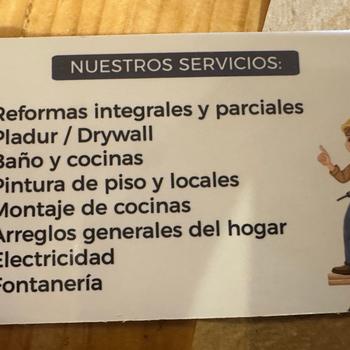 Soy Miguel Anthony Más de 10 años de experiencia en el sector. Especialista en: • Reformas integrales y parciales • Baños y cocinas • Pladur / Drywall • Pintura de pisos y locales • Montaje de cocinas • Electricidad y fontanería • Insonorización de locales • Jardinería y mantenimiento exterior Trabajos limpios, responsables y con acabados de calidad. Presupuesto sin compromiso.
