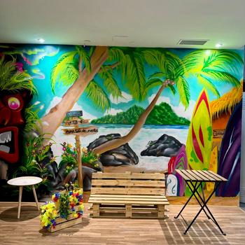 Sala totalmente equipada, cocina, neveras y congeladoresbarra de bar, billar, futbolin, fotocall, parque de bolas, gran equipo de musica y ambientación