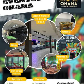 Sala totalmente equipada, cocina, neveras y congeladoresbarra de bar, billar, futbolin, fotocall, parque de bolas, gran equipo de musica y ambientación